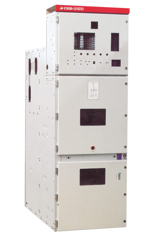 KYN28A-12系列開關設備機構整體由柜體和中置可抽出部件兩大部分組成,柜體用隔板分為五個相互獨立的隔室,外殼防護等級為IP4X,各隔室間防護等級IP2X.設備配備手車室VS1型真空斷路器或固定式負荷開關,可以從正面進行安裝調試和維護,因此它可以背靠背組成雙排列和靠墻安裝,提高了開關設備的安全性、靈活性,減少了占地面積。